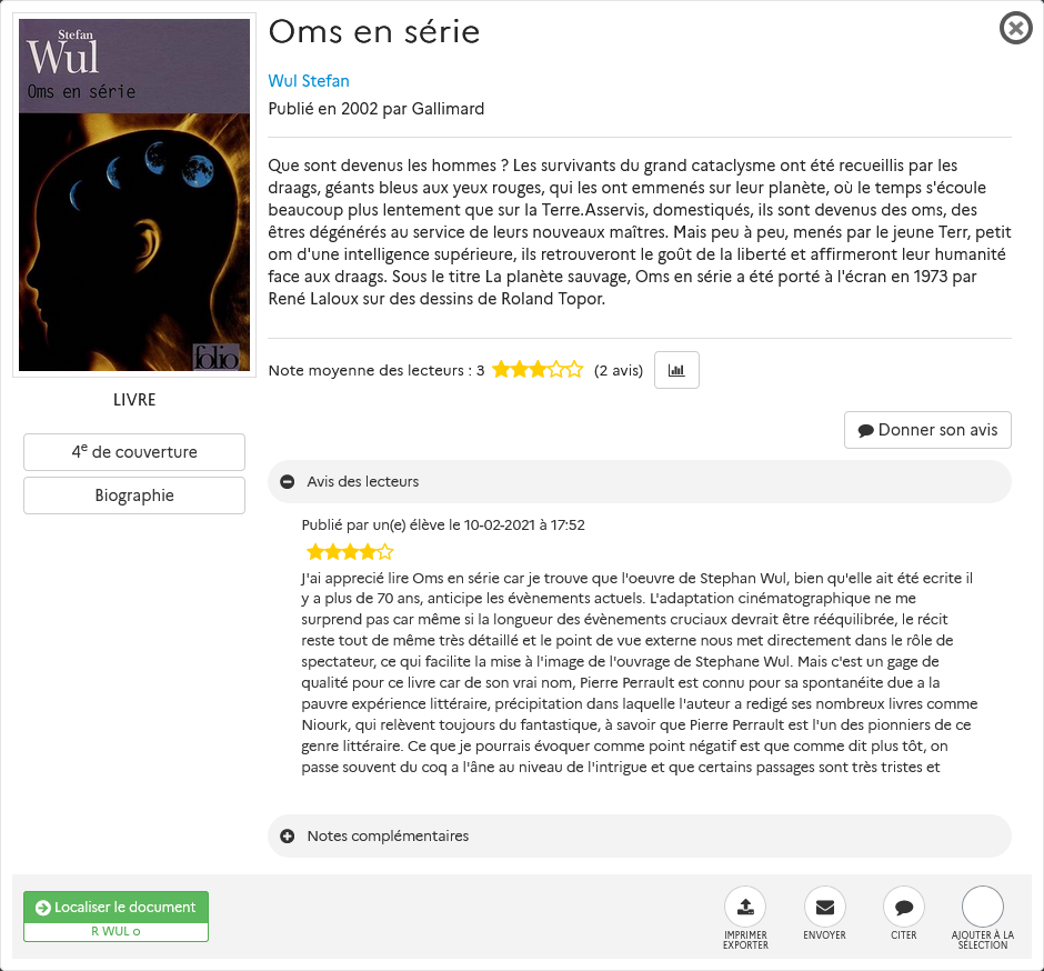 Et vous savez quoi ? Vous pouvez lire les trois œuvres littéraires qui ont fait l'objet des adaptations cinématographiques de l'ami Laloux et les emprunter au CDI ! BONNES VACANCES à vous !