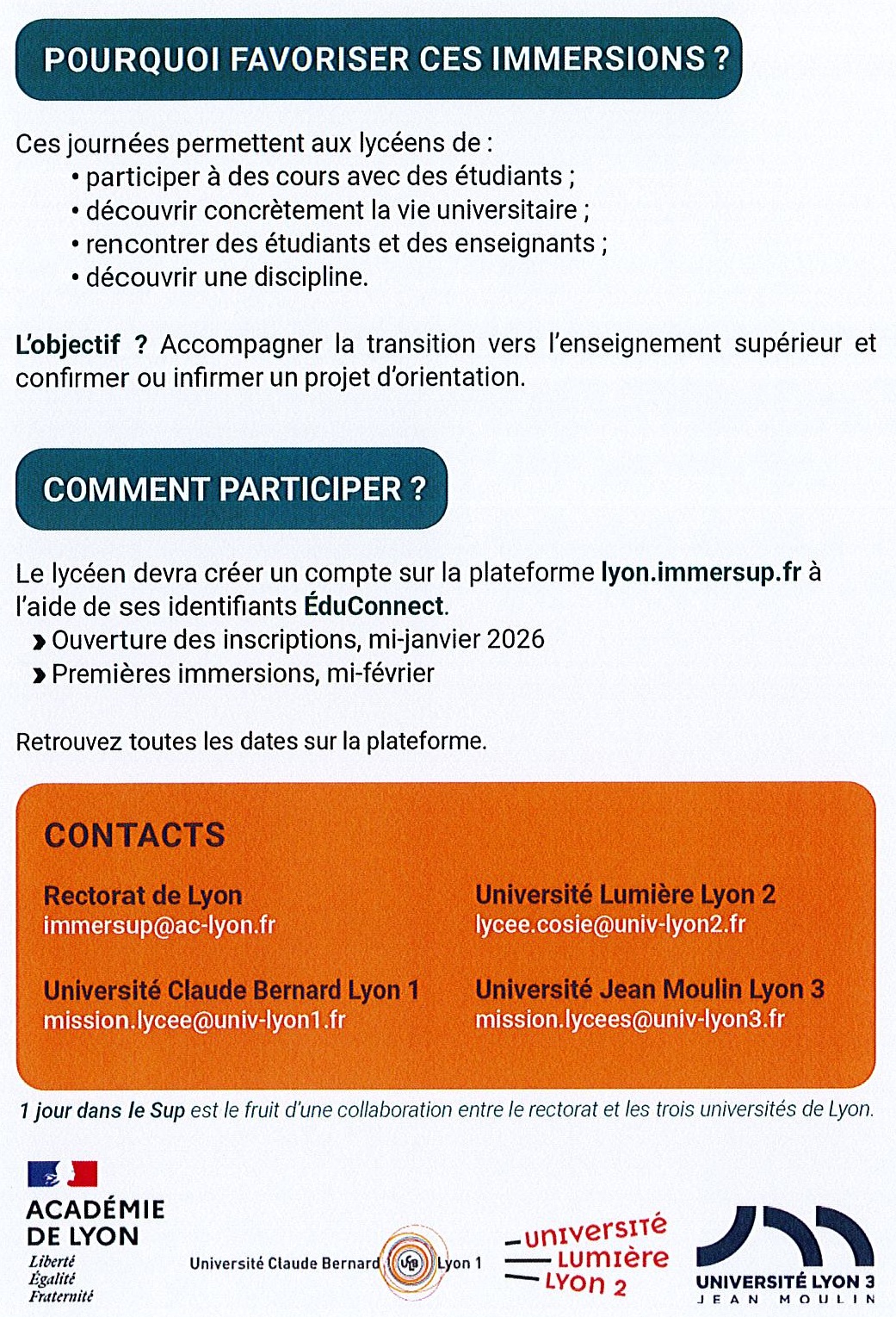 Immersion à l'université - 1 jour dans le sup
