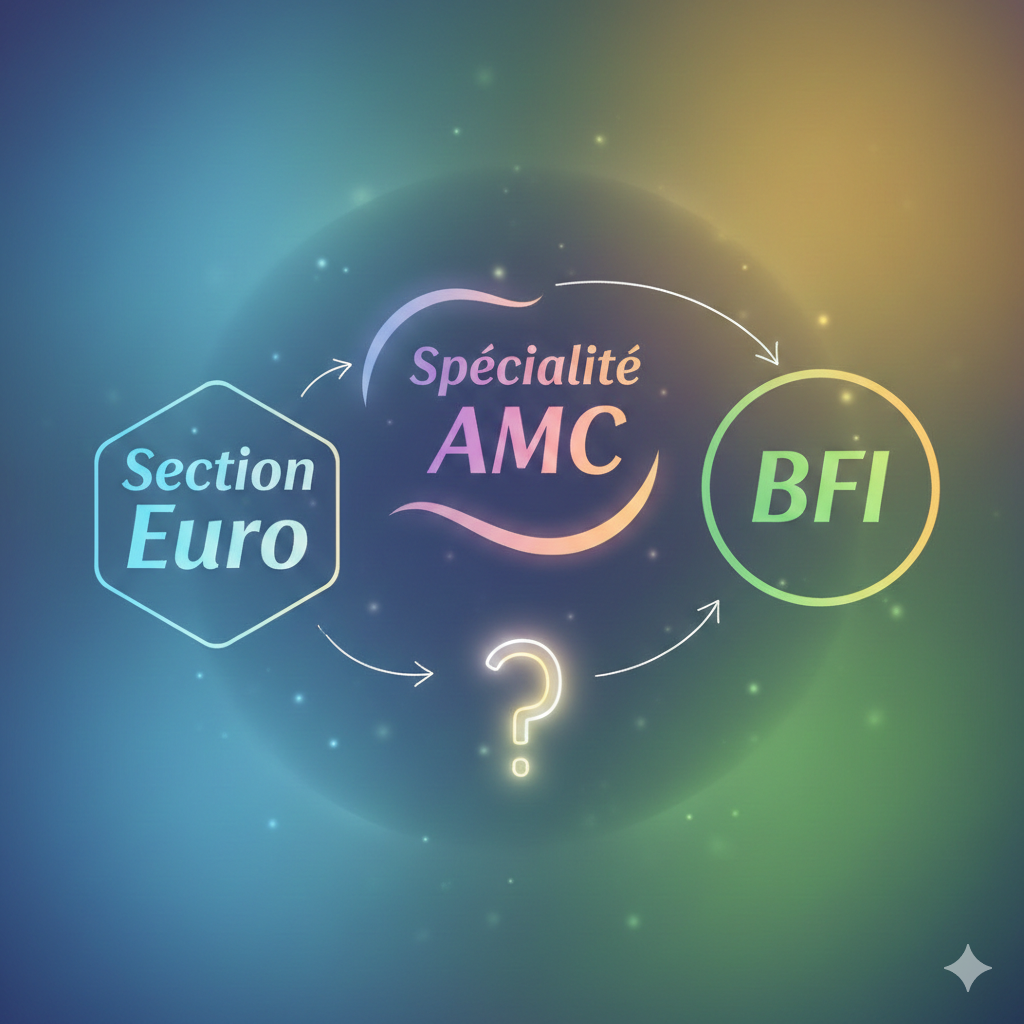 Choisir entre la section euro anglais DNL histoire géographie, la spécialité AMC et le bac français international section américain |